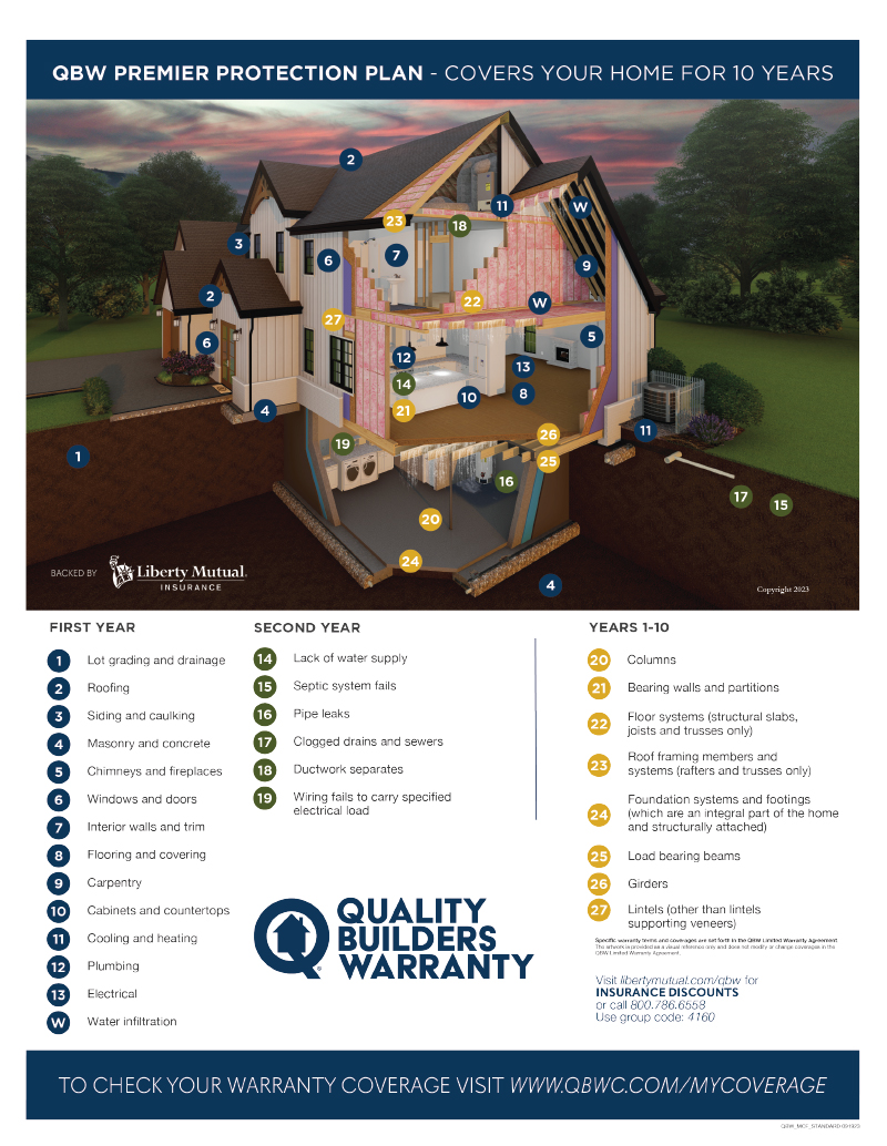 Quality Builders Warranty is the nation's premiere provider of 10-year home warranty services. Through QBW, you're able to enjoy the security of a 10-year home warranty backed by Liberty Mutual. After your build is complete, you'll work directly with QBW to address all of your warranty needs. QBW only chooses to work with builders of integrity, and we at Jim Bland Construction are proud to be among their partners!